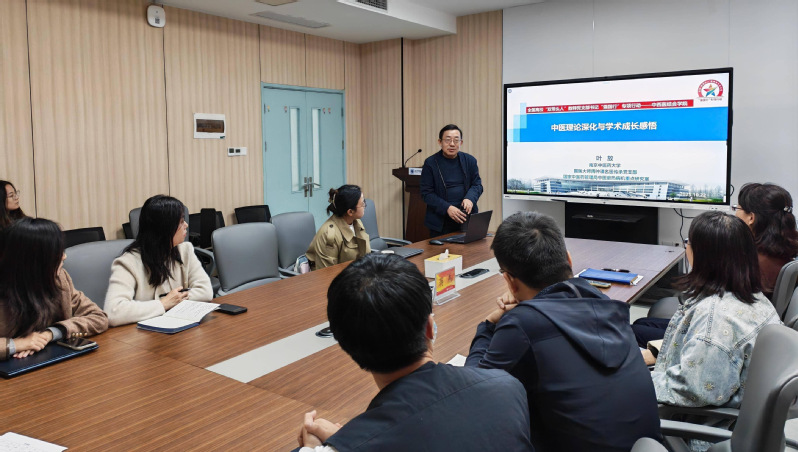 叶放教授以“中医理论深化与学术成长感悟”为题,精炼阐述了医术、医理、医道的精髓及其内在联系。他引用国医大师周仲瑛的治学理念,强调医术为实践之基,医理为知识之梁,医道则为哲学之魂。他指出,中医治病务必“讲理”,即需精准辨识病因病机,这是实现辨证论治精准高效、确保疗效最大化和确定性的关键。叶教授结合自身研究创新成果,鼓励年轻学者在学术上多从”物质层面“挖掘中医的科学内涵,扎实推动中医理论的现代化与创新发展。