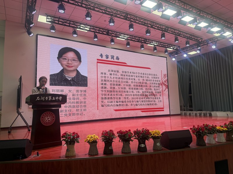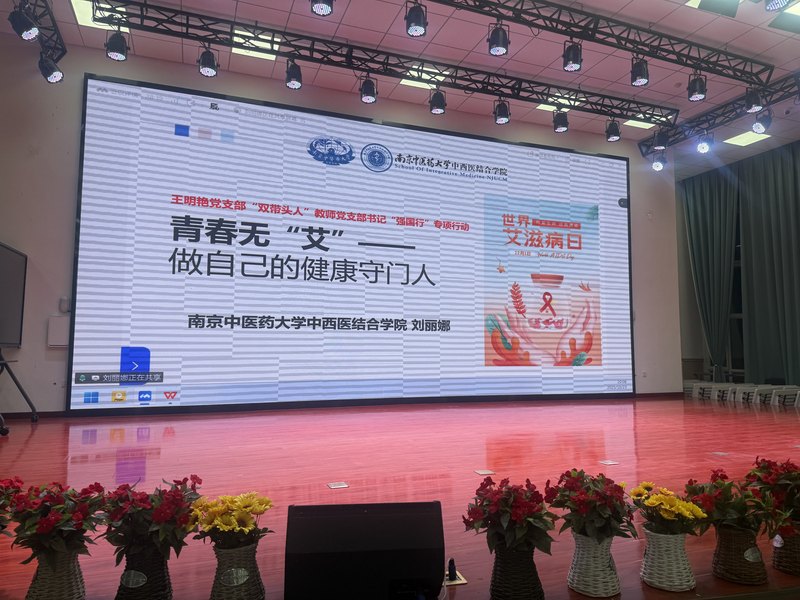 10月23日,南京中医药大学中西医结合学院中西医结合临床医学系主任、王明艳第二党支部书记刘丽娜老师受邀,为新疆石河子第五中学的师生线上进行了一场题为《青春无“艾”——做自己的健康守门人》的科普宣教。新疆石河子第五中学全体八年级学生和党员教师在学校汇报厅聆听报告。本次活动也是全国高校“双带头人”教师党支部书记“强国行”专项行动,推进大中小学思政教育一体化建设的重要一环。