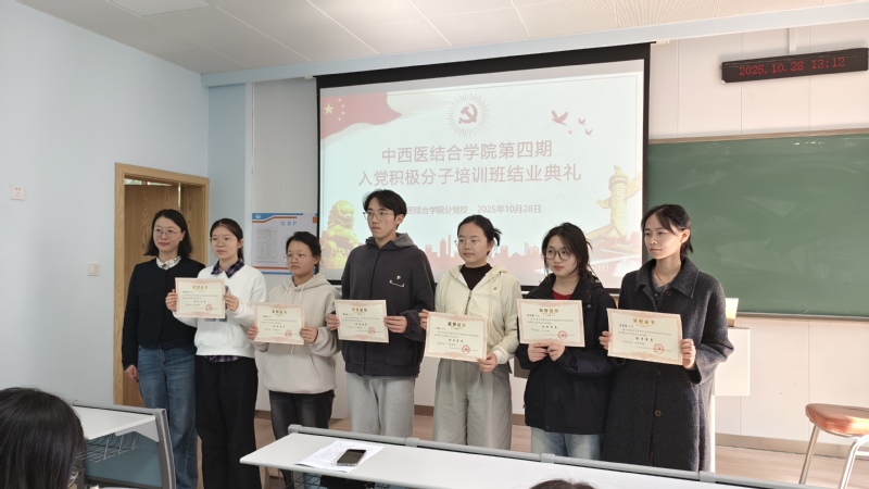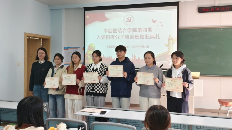 10月28日下午,中西医结合学院第四期入党积极分子培训班结业典礼在B13-101教室顺利举行。学院党总支书记、分党校校长蒋燕,专任教师夏文以及本期培训班41名学员出席典礼。学院党总支组织员、分党校班主任马小伟主持结业典礼。