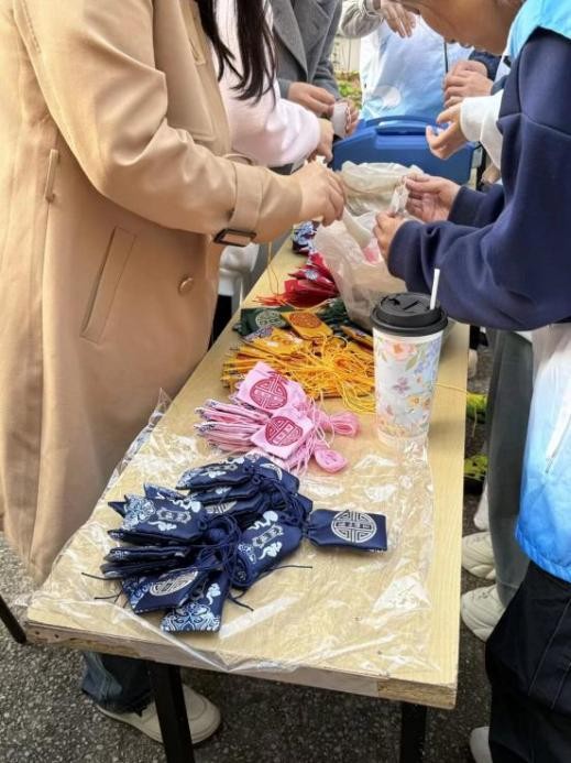 香囊制作区,志愿者们耐心指导参与者搭配中药材料,介绍不同配方的养生功效,亲手缝制的香囊承载着传统智慧与美好祝愿。
