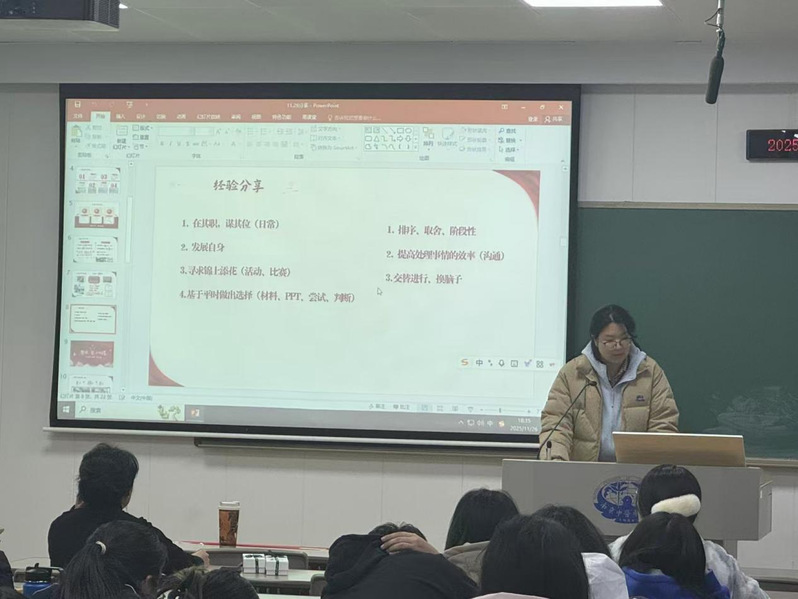 中西临232班的梁璐同学就作为学生骨干,如何平衡学业与工作、如何提升组织协调能力进行了分享。从沟通技巧到责任担当,从活动举办到材料申报,梁璐同学通过这些“干货”分享让同学们对学生骨干的角色、职责及工作方法有了更清晰的认识。