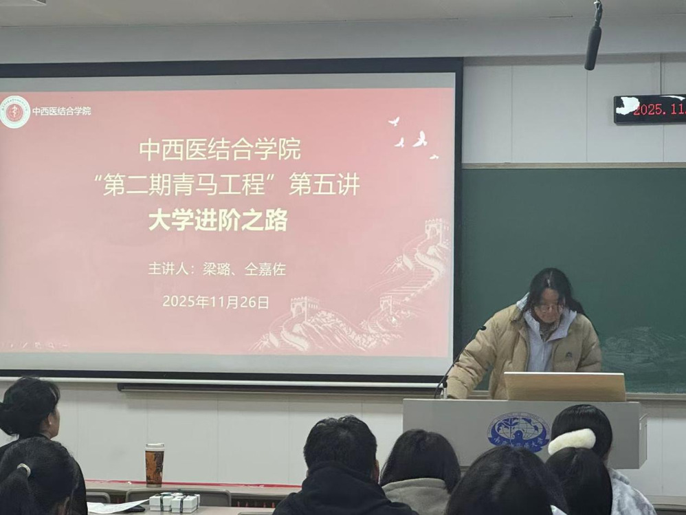 11月26日,中西医结合学院在远志园“一站式”学生社区举行了第二期“青马工程”第五讲。本次培训主题聚焦于学生骨干能力提升和暑期社会实践优秀团队分享。在本次培训由中西医临床医学251班马娅主持。