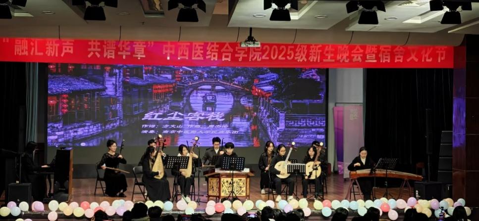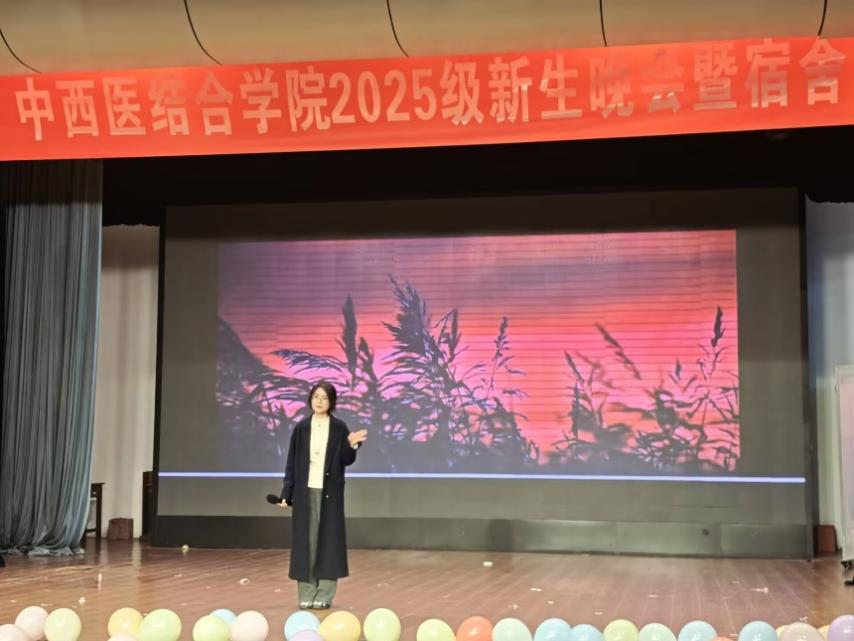 初冬之夜,暖意融融。11月30日晚,中西医结合学院“融汇新声共谱华章”2025级新生晚会暨宿舍文化节开幕式于大学生活动中心青春剧场顺利举行。中西医结合学院2025级学业指导老师、研究生班主任老师、学生工作办公室辅导员与全院新生共同奔赴了这场青春盛宴。晚会由葛懿然、黄上云、罗璐、帅苏芯四位同学共同主持。