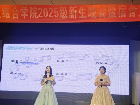 随后的“听歌识曲”环节瞬间点燃全场。当经典旋律的片段在剧场响起,台下同学迅速响应,抢答声此起彼伏。这一刻,不仅是速度的比拼,更是青春记忆的共鸣,同学们凭借敏捷的反应与丰厚的音乐储备,让欢声笑语与熟悉的音符交织,将晚会气氛推向新的高潮。