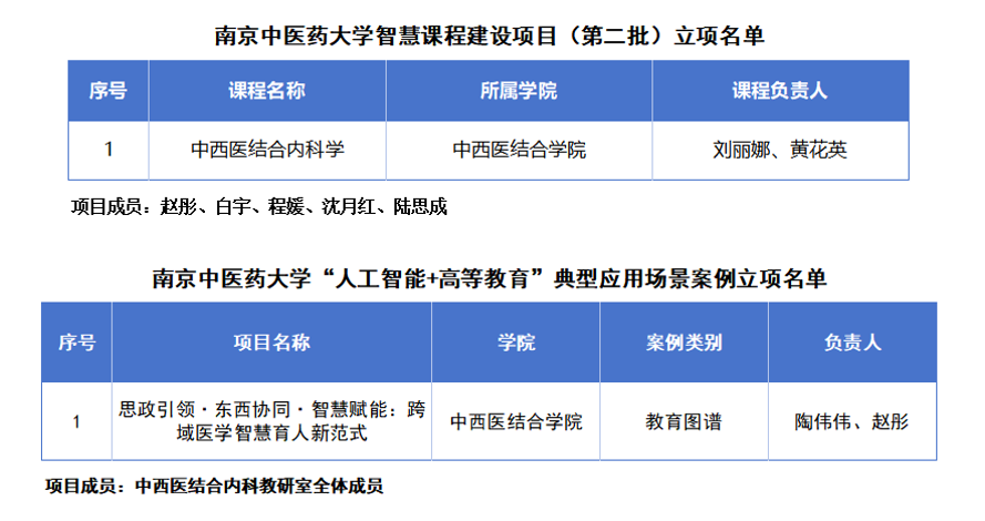 由刘丽娜教授、黄花英副主任医师牵头,赵彤等多位教师参与的《中西医结合内科学》课程,获批校级智慧课程建设项目。作为中西医结合专业核心课程,此项目通过搭建数字化教学载体,引入在线平台、虚拟仿真实验等技术,让教学资源更生动直观,优化教学模式,提升学生学习体验与效果,为其他课程数字化建设提供参考。