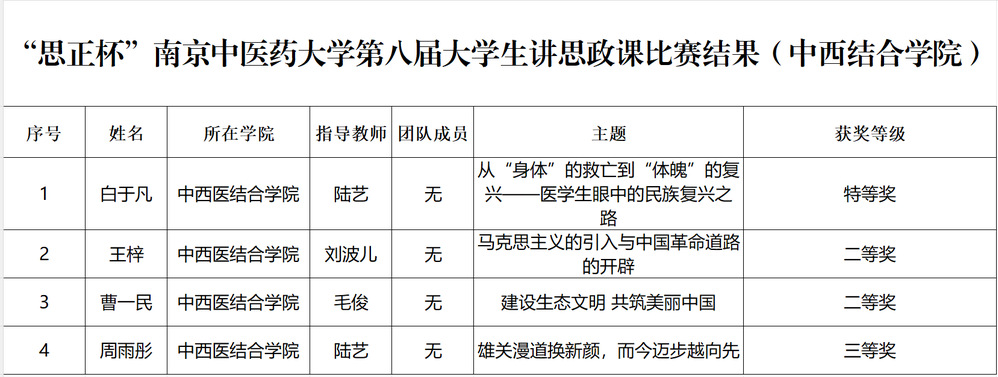 思政课是落实立德树人根本任务的关键课程,它承载着为党育人、为国育才的神圣使命。学院将继续加强思想引领,全面贯彻落实习近平总书记关于学校思政课建设的重要指示精神,助力中西医结合学子再创佳绩。