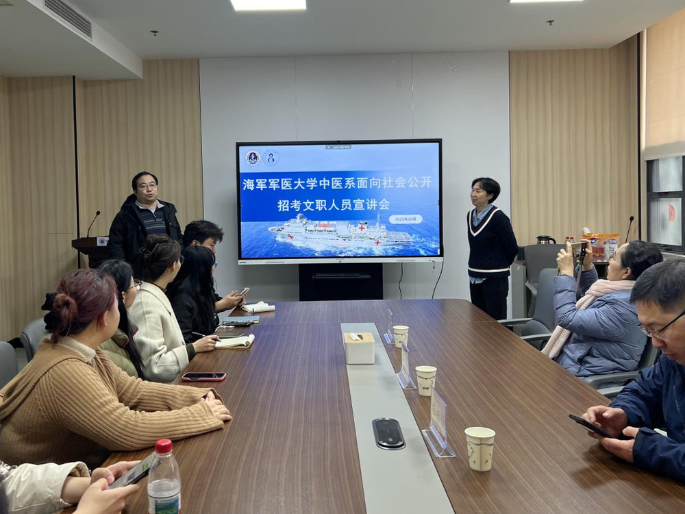 12月18日,中西医结合学院在远志园“一站式”学生社区举办海军军医大学文职人员招考宣讲会。海军军医大学中医系中医内科学教研室主任杜娟、长海医院中医肿瘤科主任程彬彬、中医内科门诊副主任医师姚茹冰,学院副院长陶伟伟出席了宣讲会,全校各专业研究生参会。宣讲会由中西医结合学院学工办副主任徐梓凌主持。