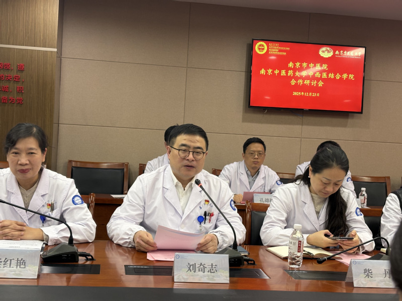 刘奇志代表医院表达了欢迎,他指出,南京市中医院作为南京中医药大学附属医院,始终以“双高协同”战略为引领,医院高度重视与学校学院的合作,已经与学院有了良好的合作基础,他期待,未来双方能建立更加常态化、制度化的沟通机制,在科技创新、重点实验室建设、人才培养等领域开展更深层次的协作,实现优势互补、共赢发展。