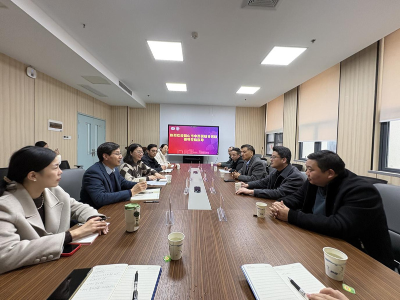 12月22日,昆山市中西医结合医院一行到我院考察交流,医院党总支书记、院长方东,副院长郑建新,医务信息部副主任李庭,眼耳鼻喉科主任张海全,中西医结合学院党总支书记蒋燕,院长贾立军,副院长陶伟伟,院长助理章轶立和部分教研室主任等参加了会议。