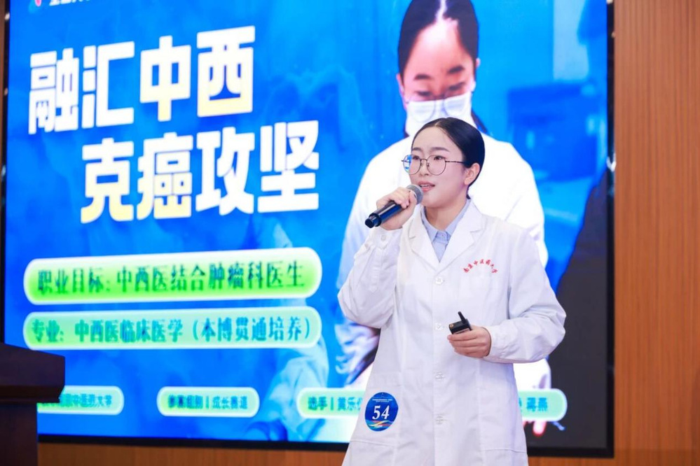 自今年6月学校启动赛事工作以来,中西医结合学院持续将职业生涯规划指导与学生专业发展相结合,在拔尖创新人才培养的过程中挖掘培育种子选手。经过院内层层选拔,黄乐仪在校内初赛、决赛比拼中崭露头角。学院领导高度重视选手培育和潜力挖掘,持续提供平台资源支持,多次邀请行业内专家、一线临床从业者等开展访谈,邀请赛事专家打磨指导。最终黄乐仪以《融汇中西 克癌攻坚》为主题,结合个人亲身经历与学习实践历程,围绕中西医结合肿瘤科医生的职业目标在赛场上进行了精彩的展示。她充分展现了中西医结合学院学子学贯中西,医济天下的高远情操追求,与立足临床,不懈科研的清晰职业规划,为广大杏林学子做出了优秀的表率。