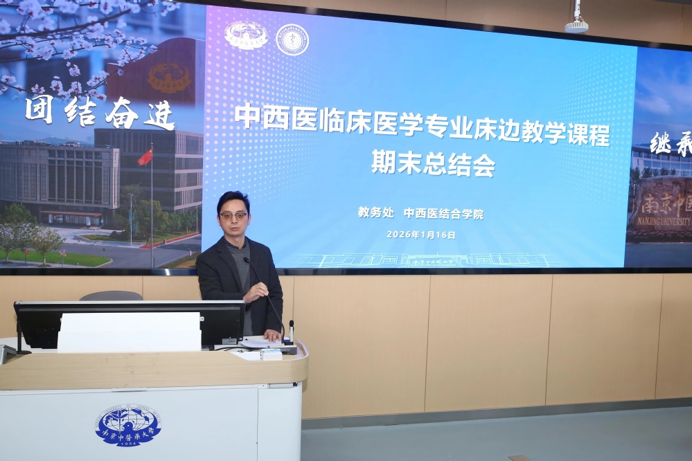 冬意渐浓,薪火相传。为进一步规范床边教学管理,提升课程教学质量,推进大教研室运行机制落地见效,1月16日,南京中医药大学教务处与中西医结合学院联合在仙林校区举办2025-2026学年第一学期中西医临床医学专业床边教学课程期末总结会。教务处处长陈志鹏、教学基地办公室科长刘佳章,中西医结合学院党总支书记蒋燕、副院长陶伟伟,学院全体专任教师及6家床边教学点的任课教师代表、科教科负责人参会,会议由陶伟伟主持。