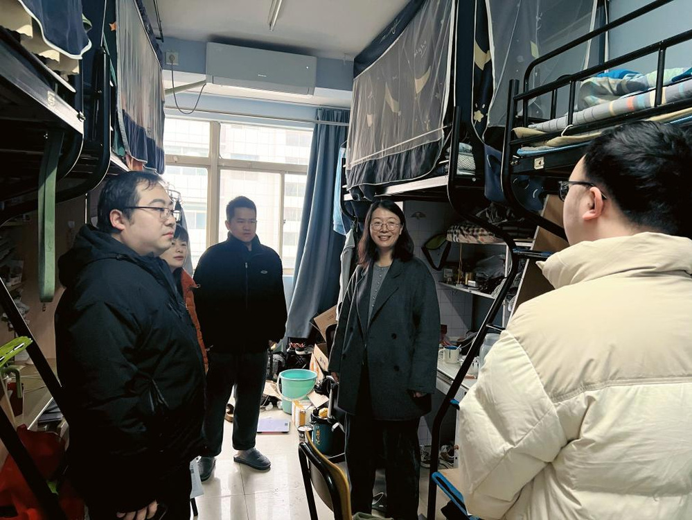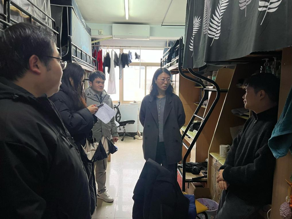 会议结束后,蒋燕、章轶立带领全体辅导员、班主任深入本科生和研究生宿舍,亲切慰问返校学生,详细了解学生们寒假思想动态、学习科研进展及日常生活情况。院领导重点走访了毕业班宿舍,与毕业生面对面交流,关切询问学业进展与实习就业安排,鼓励大家拓展就业思路,多渠道、多途径实现个人发展目标。