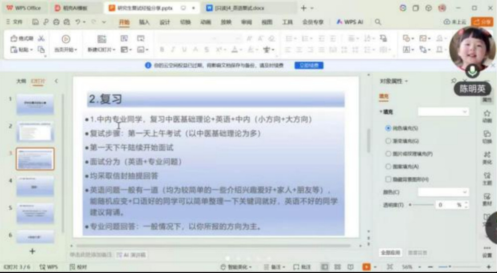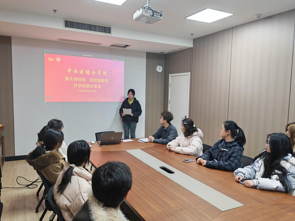 在朋辈分享环节,五位优秀学子结合自身升学经历,从不同角度进行了深入交流。王晟乾聚焦考研复试的核心要素,详细解析了题型设置与分数权重,梳理了专业课复习的核心资料来源,并着重强调了临床技能操作在考核中的关键地位。刘俊娴从复试概览、备考策略、英语面试技巧、简历准备与导师联络、心态调整五个维度切入,结合自身备考经历,为同学们提供了可借鉴的复试全流程经验。陈明英立足中医内科学专业方向,建议考生以中医基础理论、英语及中医内科学为核心复习内容,提醒大家通过官方渠道及时获取招生与复试信息,并在面试中保持自信得体的表达状态。