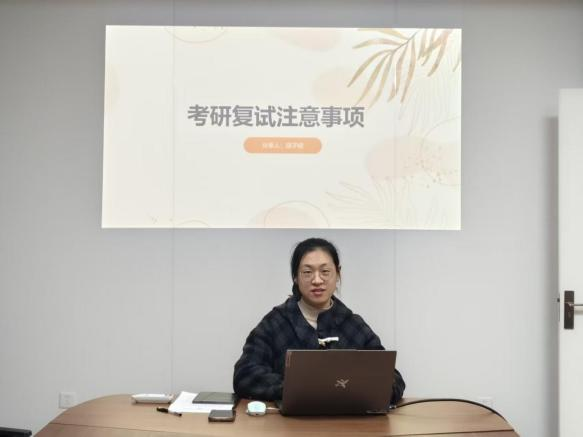 邱子倍围绕考研复试的关键环节进行了系统梳理。她从信息搜集、院校动态跟踪、面试礼仪及整体流程等方面入手,为同学们厘清了备考思路,强调了细节准备在复试中的重要性。
