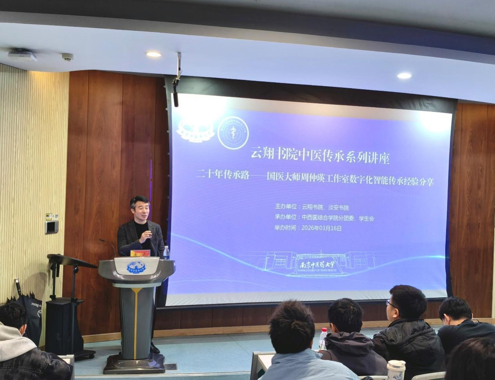 3月16日,中西医结合学院云翔书院联合淡安书院主办,中西医结合学院分团委、学生会承办第26期云翔名家讲坛。讲座特邀朱垚副教授,于远志园“一站式”学生社区面向全校师生开展“二十年传承路——国医大师周仲瑛工作室数字化智能传承经验分享”讲座。讲座由中西医临床医学251班吴殷桎主持。
