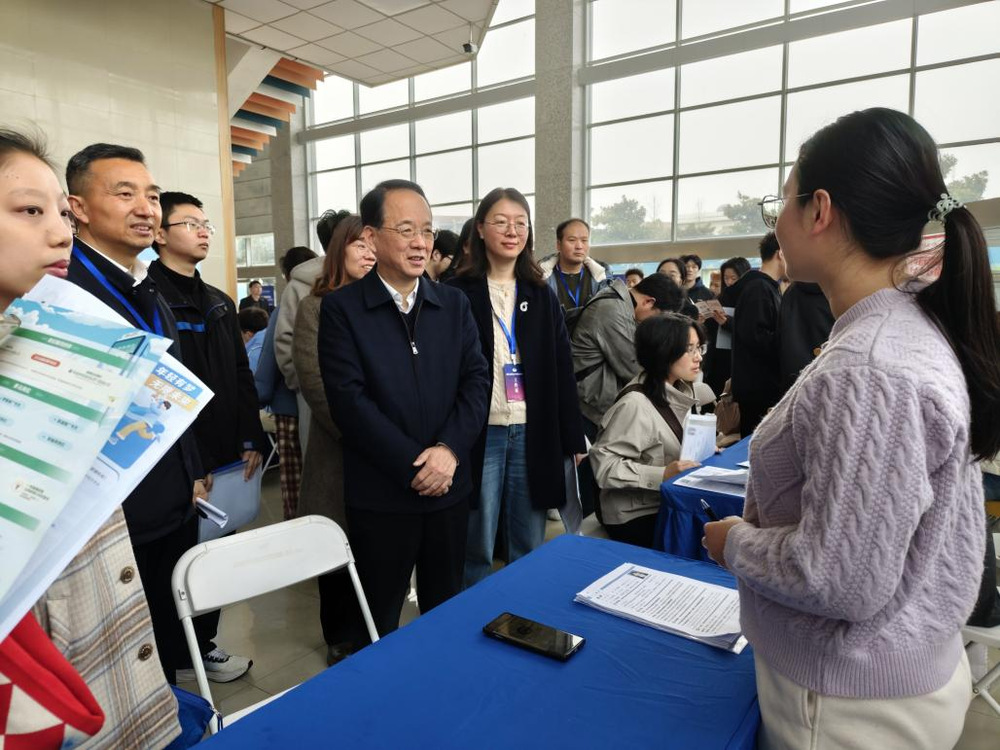 学院积极组织毕业生参加本次招聘会。蒋燕在现场为我院毕业生开展就业指导,帮助毕业生凝练优势特点、提升求职竞争力,并向用人单位积极推介优秀毕业生,搭建起毕业生与用人单位高效对接的平台。