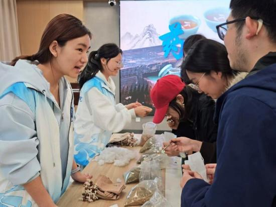 活动现场,志愿者们精心筹备了枸杞菊花茶、玫瑰疏肝茶、陈皮理气茶等多款经典养生花茶。他们结合中医理论,生动讲解每种花茶的性味归经、功效适配人群及冲泡讲究,从食材甄选的“道地性”到冲泡水温的“精准度”,细致拆解专业知识。参与师生依次品鉴,在茶香氤氲中感受花茶的清香醇厚,深入了解花茶“药食同源”的养生智慧,将中医养生理念融入日常生活。