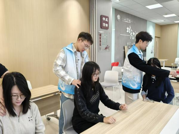 推拿体验区人头攒动。志愿者们为师生提供一对一推拿体验,结合人体经络分布,精准操作按、揉、捏、推等手法,有效缓解日常学习工作带来的身体疲惫。现场还普及了日常推拿保健常识,让中医推拿的“治未病”理念深入人心。